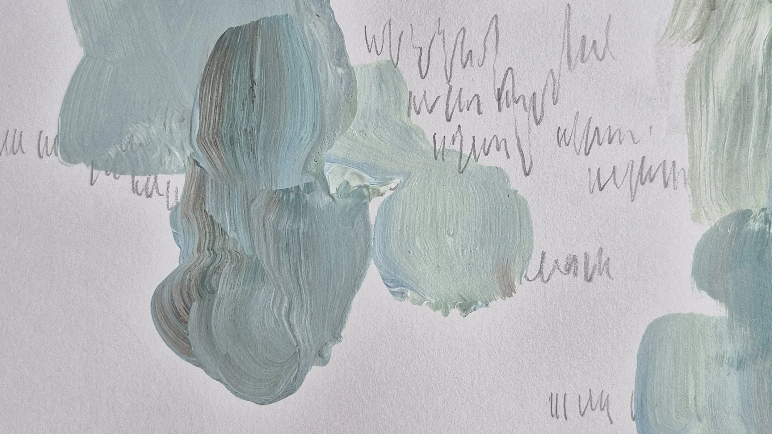Hope, Grace, Rebirth, Renewal, April 2023, acrylic, graphite, and rainwater gathered from Long Beach skies on paper, 9 ½ x 9 ½ “ each. For the Long Beach Chorale & Chamber Orchestra’s Music of Transcendence concert, featuring Fauré’s Requiem at Grace First Presbyterian Church.