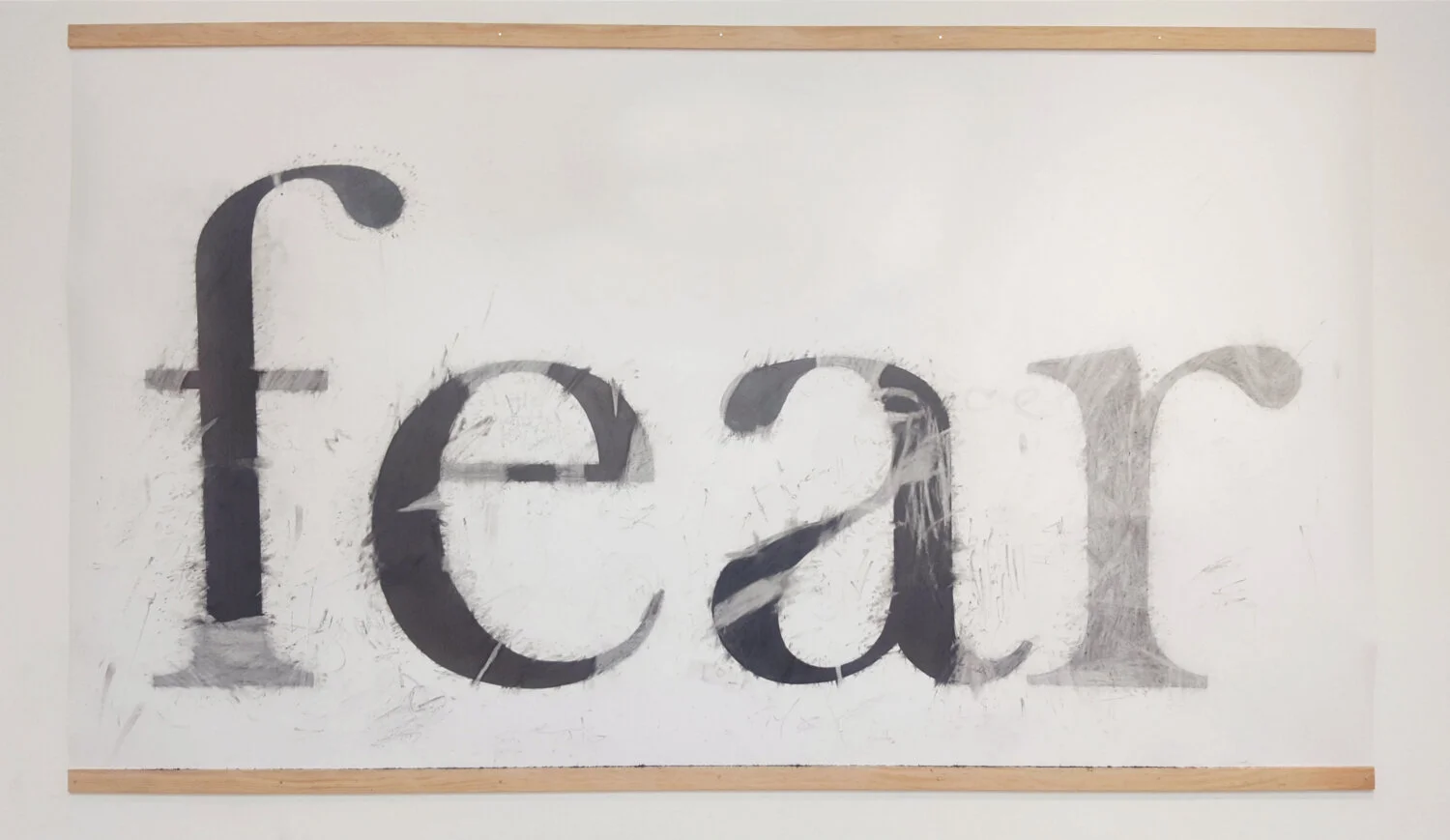 Even after being erased by multiple hands, the residue of fear remains, like a faded scar that reminds us of the afflictions that we’ve overcome. Perhaps the physical act of quieting the density of the fear might somehow free ourselves from it, calling forth the courage that resides within us—this same courage that was carried by those who came before us.