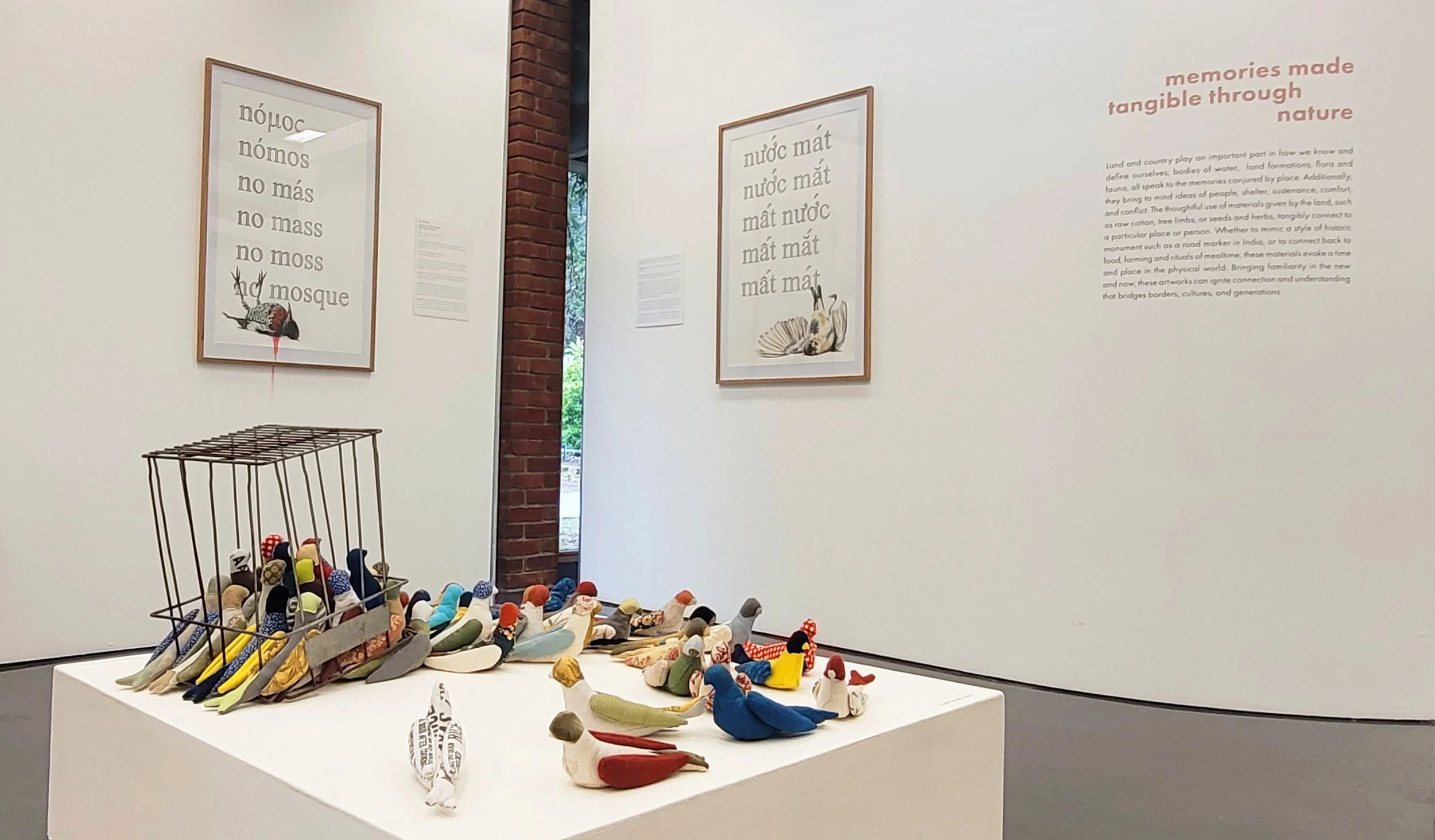 Nómos No Más (No More Law) and Nước Mắt (Tears) with Free Birds, debuting together as part of Made of Memory at new museum los gatos, california. I begun All three works in 2019, and after some time, my heart could no longer bear it, so I hid them in my portfolio. During a studio visit in 2024, they came back to light with the encouragement of writer and curator Michèle jubilee. I am so grateful that they have not only been freed from the portfolio, but that they have migrated out into the world as an active prayer for freedom.