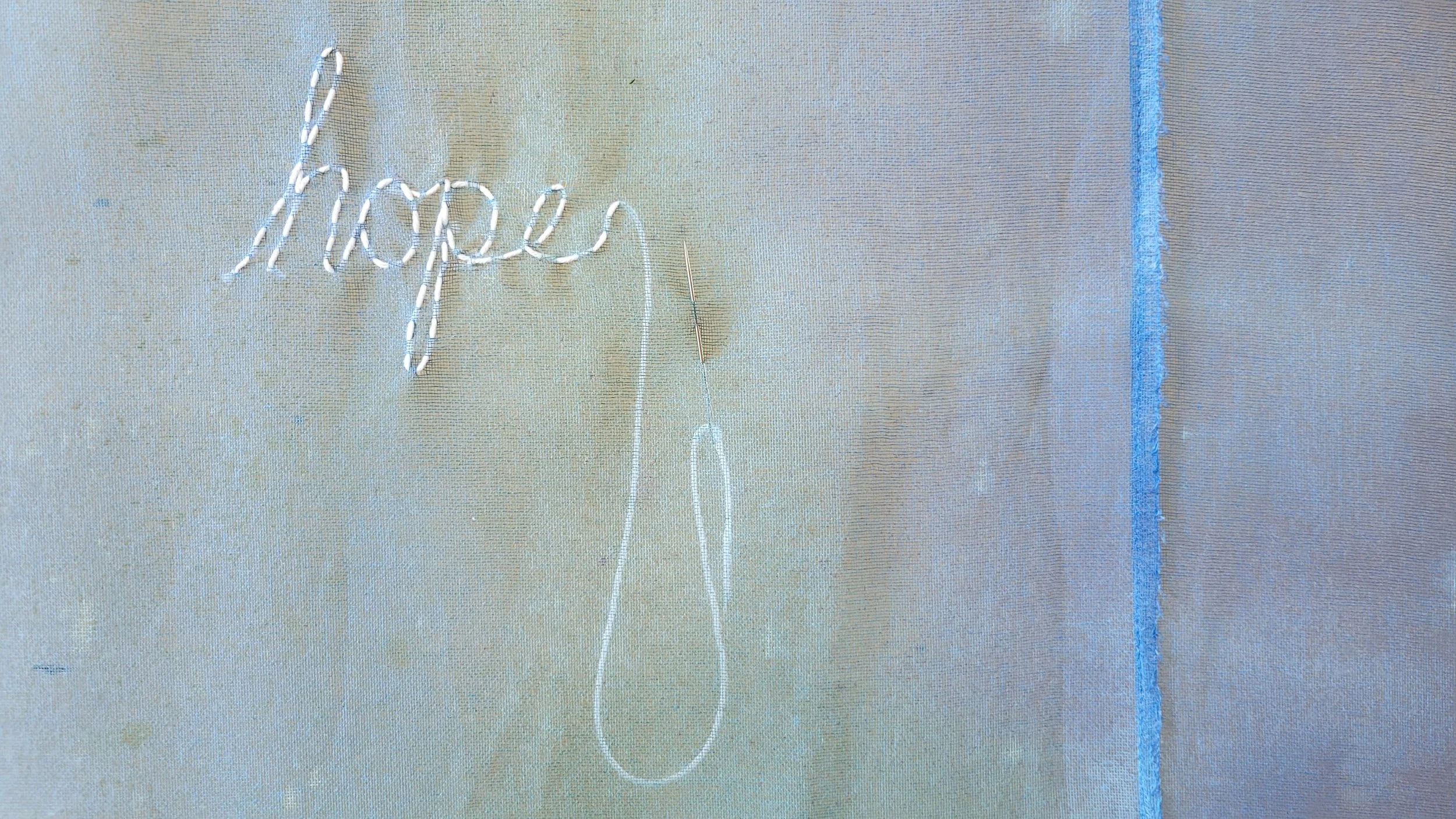 Sowers of Peace workshop at Stanford University. Embroidering over 50 words upon Peace be to this House was incredibly meditative and did indeed pull me further into a state of peace. I wanted to share this process with others, and had an opportunity to do so with a group of students whose lives, studies, ambitions, and witnessing of a hostile world had pressed upon them far too much anxiety. While some of us spoke softly about the important things in life, most of us sat in silence, stitching words of beauty and love and peace upon their swaths of cheesecloth. This was an active call for peace to be instilled into our hearts as we witness wars all around us.